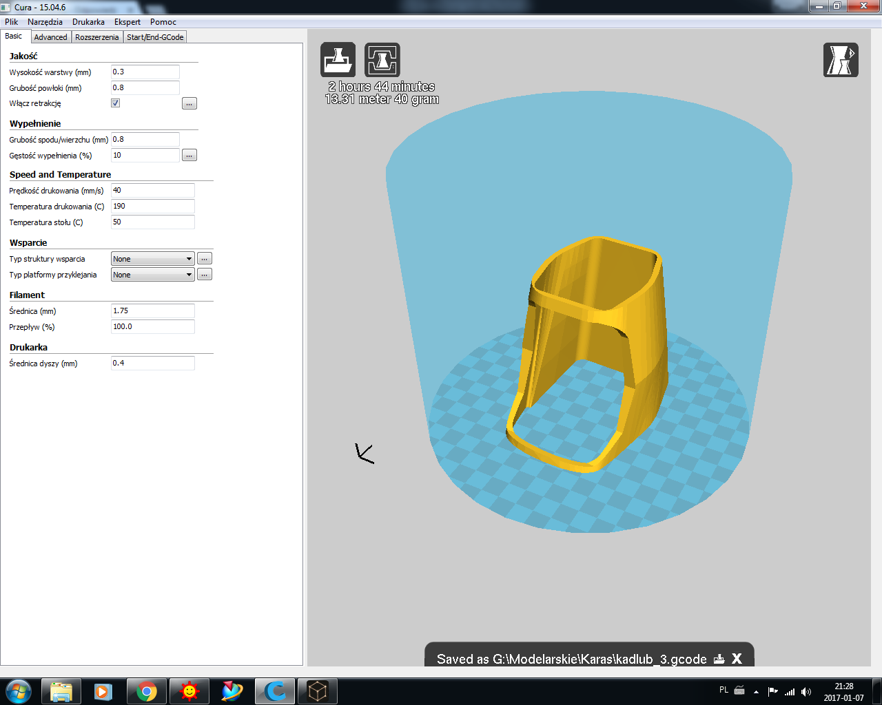 Szykuję pod wydruk 3D wielkość po wydruku około 1 metra rozpiętości.
