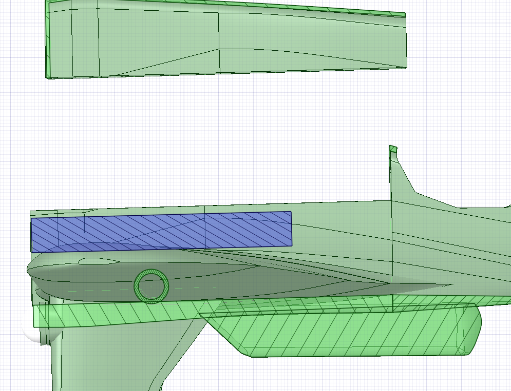 Jak i gdzie? Wskaż waść, a potem gdzie umieścić pakiet, serwa, regulator i zapewnić do nich dostęp. Zrobiłem kadłub typu wanna i podwoiłem ścianki. Nie widzę tu poza skrzydłami miejsca na użebrowanie skośne, no poza ogonem, ale tam też będzie podwojona ścianka z wypełnieniem pomiędzy nimi coś jak wydruk typu wazonik. Ścianka 0.2 chyba zbyt mało, nie do końca widzisz skali modelu. Dla przypomnienia moja drukarka to cylinder o średnicy 150 mm i wysokości 154 mm